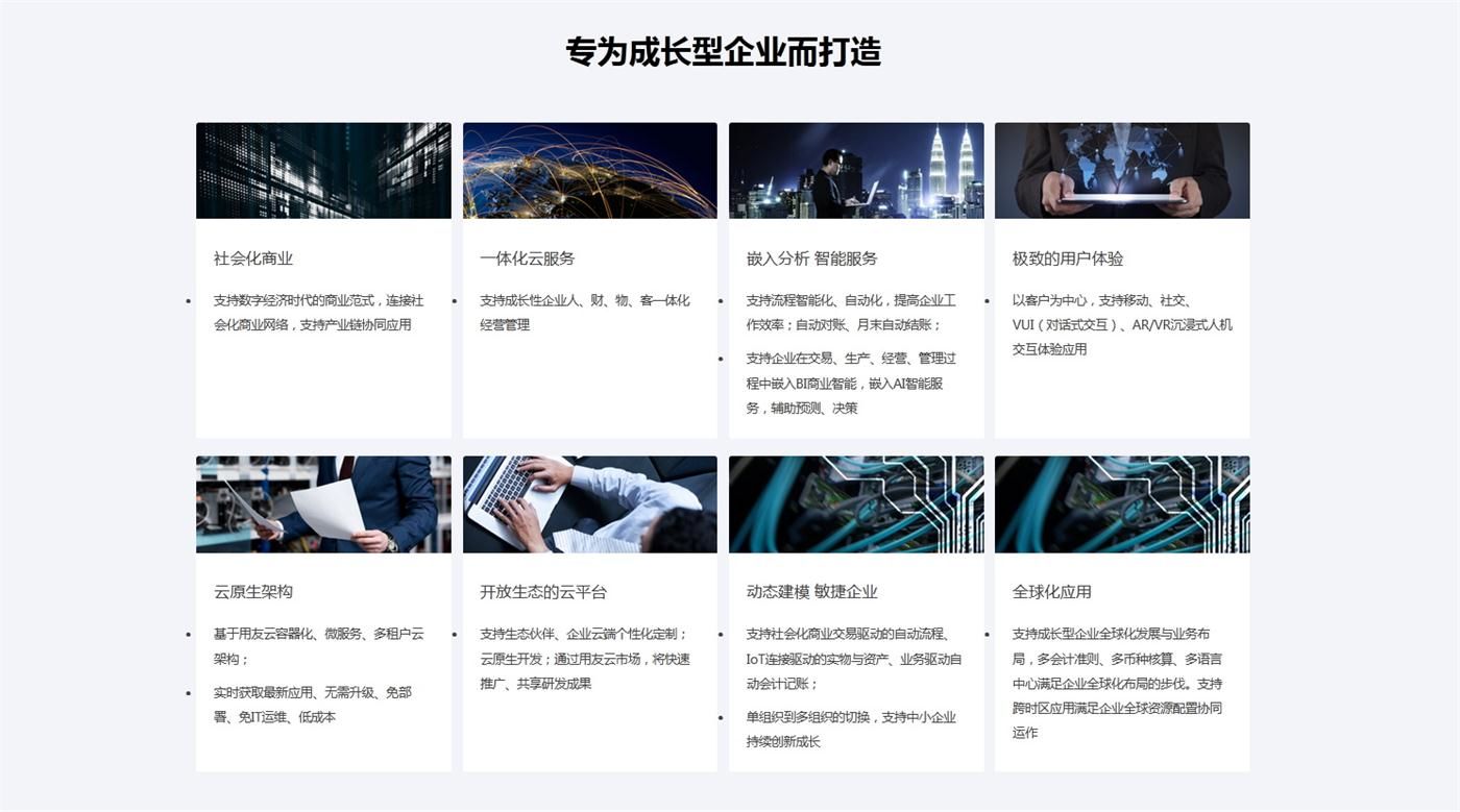 基于云原生架構(gòu),為成長型企業(yè)提供“營銷、制造、采購、財務(wù)、人力、辦公、平臺”融合一體,支持企業(yè)全 球化經(jīng)營、社會化商業(yè)的云服務(wù)。使能企業(yè)數(shù)字化、智能化發(fā)展,成就以客戶為中心,數(shù)據(jù)驅(qū)動、實時運營,輕松管理的數(shù)智企業(yè)。幫助中 國企業(yè)從初創(chuàng)走向全 球化經(jīng)營,也為全 球成長型企業(yè)提供數(shù)字化云服務(wù)。