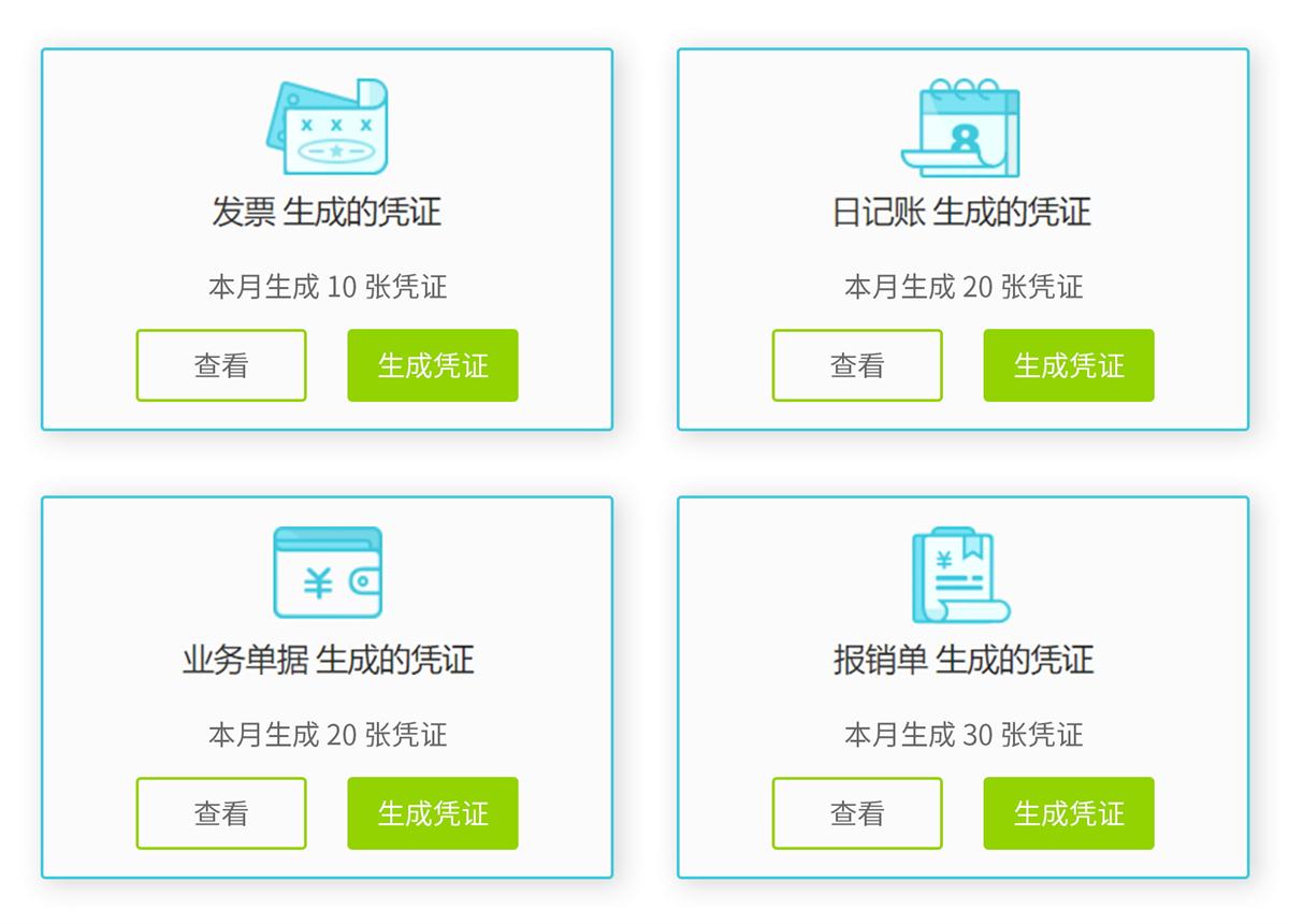 消除電子表格/手工做賬、也無需一筆筆錄入會計科目;通過智能憑證中心將發票、日記賬、報銷單等自動生成憑證,提升做賬效率